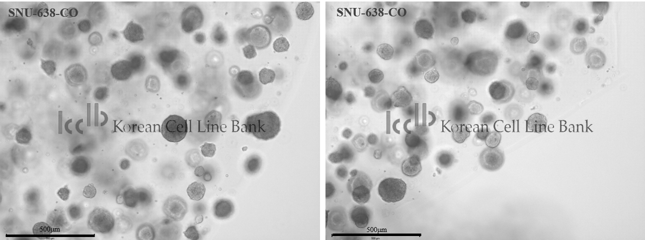 The organoid-containing dome (Corning, Matrigel; Trevigen, Cultrex BME; Merck, ECM; Thermofisher, Geltrex) was mechanically pipetted using animal origin-free, recombinant enzyme (Thermofisher사 TrypLE Express solution 등) and organoids were collected in a 15 mL conical tube. The organoid-containing dome was mechanically dissociated with intense pipetting, and the tube containing the organoids and organoid-containing dome mixture was incubated at 37°C for approximately 5 - 10 min. The organoids were centrifuged at 1,000 rpm for 3 min, and the supernatant was aspirated. Once organoid-containing dome was removed, the cell pellet was resuspended with fresh organoid-containing dome, seeded in a T-25 flask and the flask was incubated at 37℃ for 10 min. Once organoid-containing dome was solidified, 5 mL of the culture medium was added to the flask to overlay the organoid-containing dome and cells were incubated in a 37℃ and 5% CO2 culture incubator.
