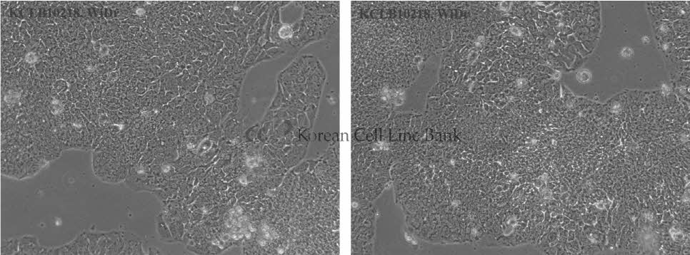 Colon Antigen 3, negative; This line isozyme a derivative of HT-29; the cells are positive for keratin by immunoperoxidase staining; growth of WiDr cells is initiated by tumor necrosis factor alpha(TNF-alpha)